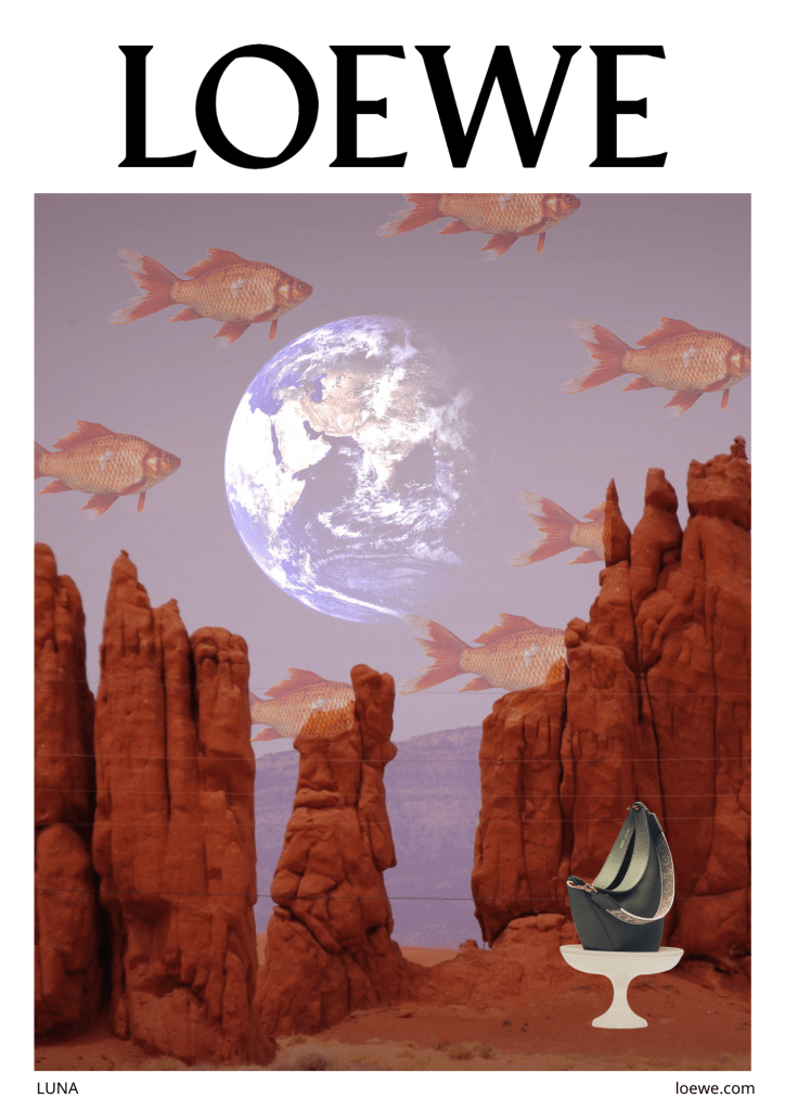a partir del universo visual del surrealismo, un movimiento artístico que rompe con la lógica y propone nuevas realidades, se busca reforzar el posicionamiento de Loewe captando la atención de un consumidor que valora la originalidad, la creatividad y el arte.